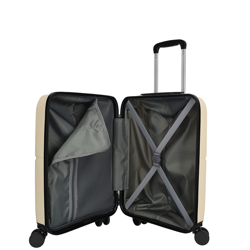 Maak kennis met je nieuwe favoriete reispartner: de Tokyo handbagage koffer, speciaal ontworpen voor wie waarde hecht aan snelheid en stijl. Deze robuuste hardshell is vervaardigd uit duurzaam polypropyleen en voorzien van een handig voorvak waarin een 15 inch laptop veilig en binnen handbereik opgeborgen kan worden. Met een betrouwbaar TSA-slot dat zowel het hoofdvak als het voorvak beveiligt, reis je met een gerust hart, terwijl de 360 graden draaiende wielen ervoor zorgen dat je moeiteloos door de terminal glijdt. Binnenin blijven je spullen perfect op hun plek dankzij de elastische inpakriemen en een groot, praktisch gaasvak met ritssluiting.